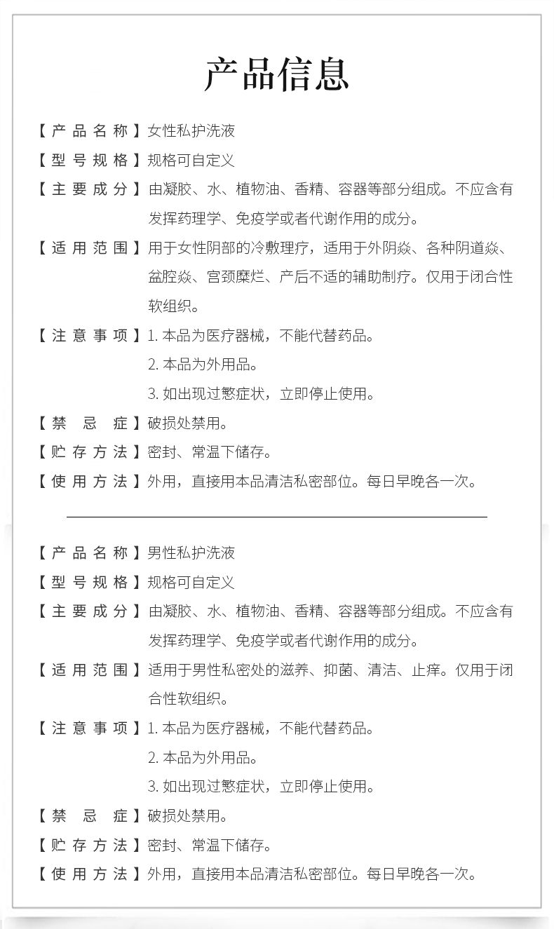 - 外用,直接用本品清洁私密部位,每日早晚各一次。