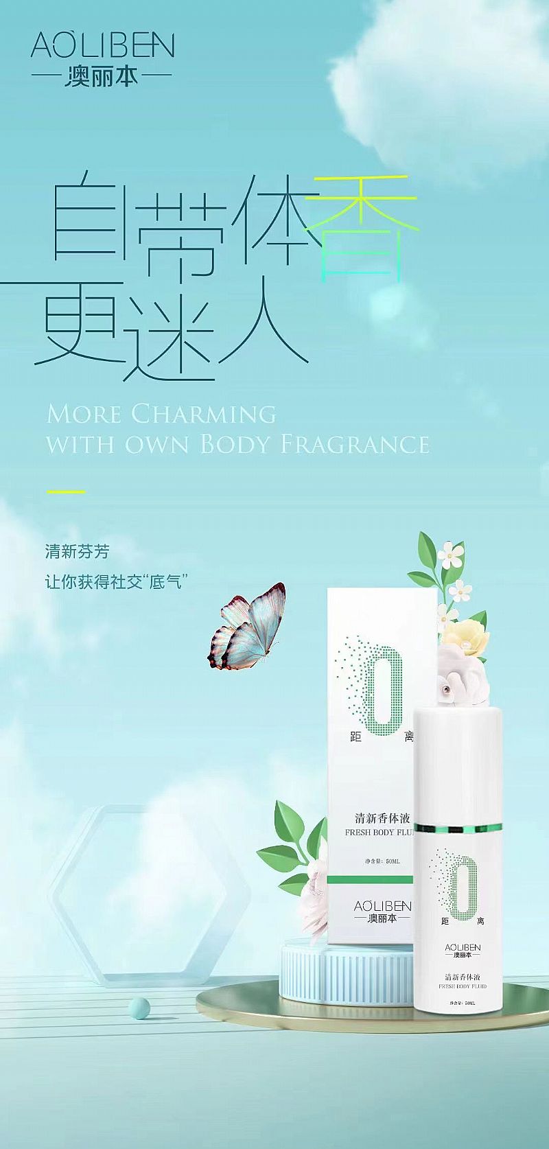 AOLIBEN澳丽本朱氏澳丽清新香体液国妆特字缩小汗腺缓解异味