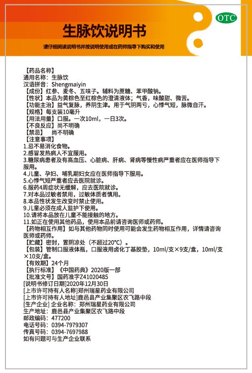 郑州瑞星药业生脉饮