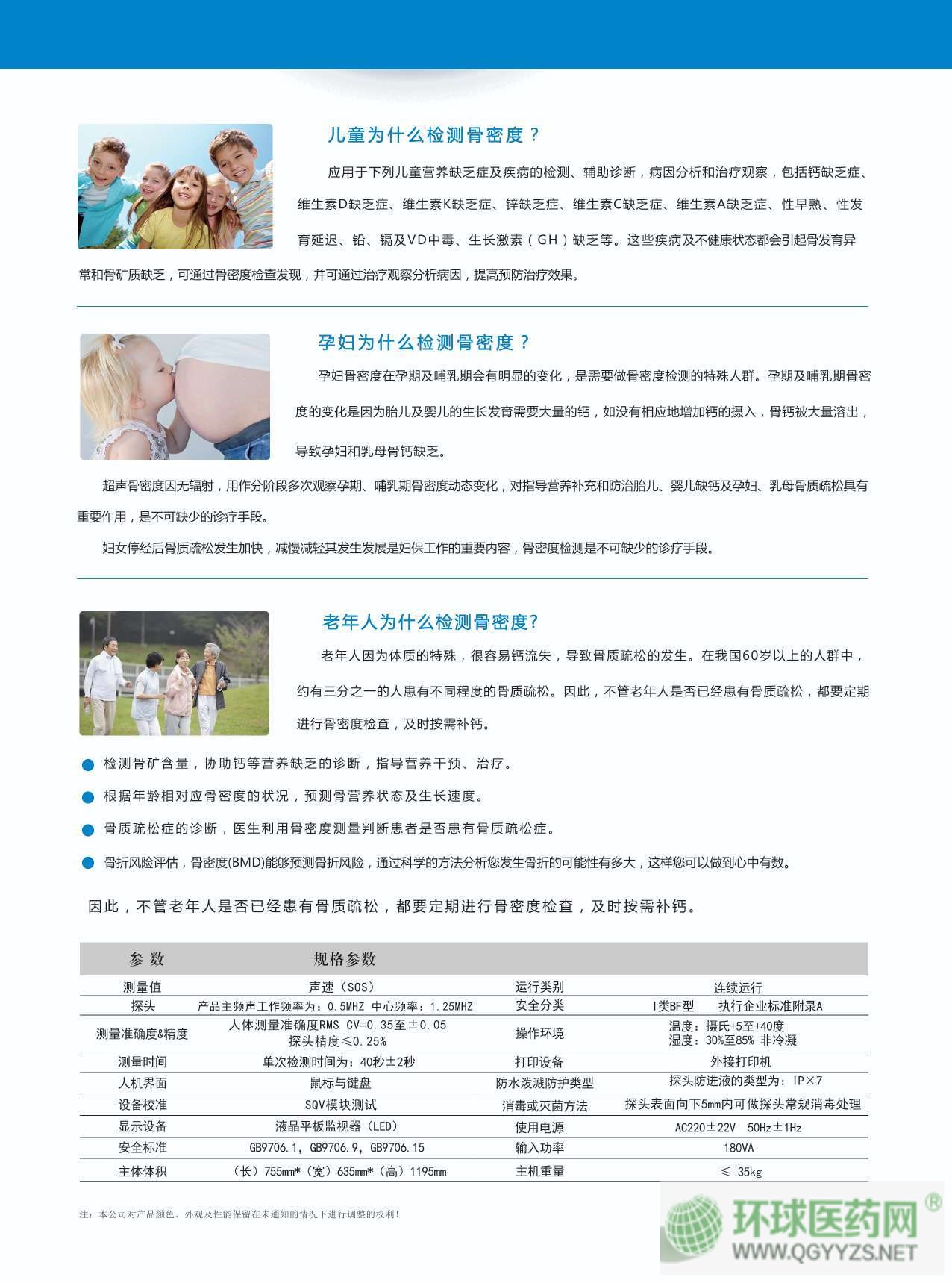 适用于采用超声波测量桡骨的超声速度,反应骨骼密度情况。