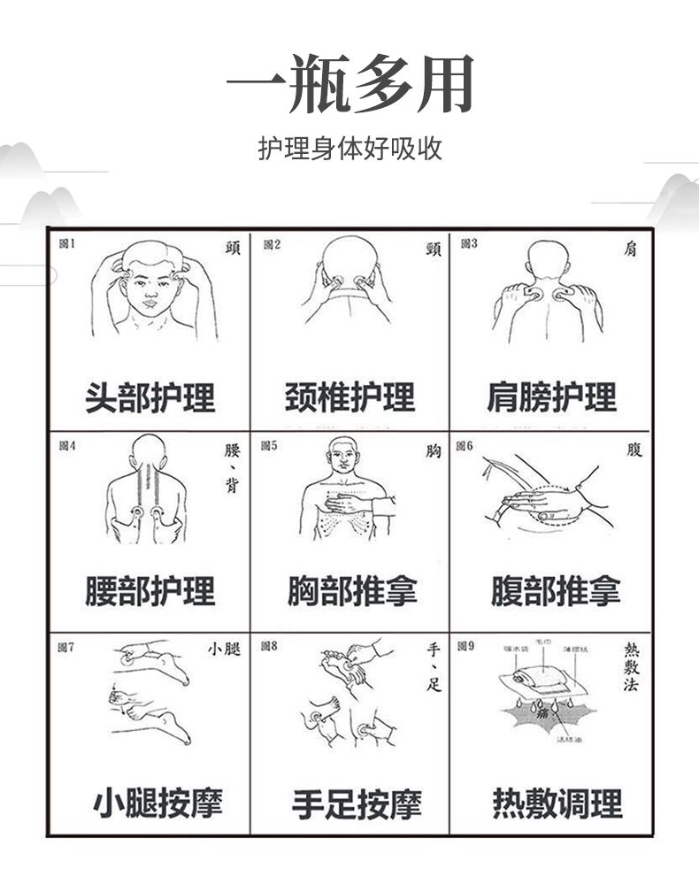 - 取出适量本品,涂抹于人体不适所需处,反复搓揉2-3**,按需使用