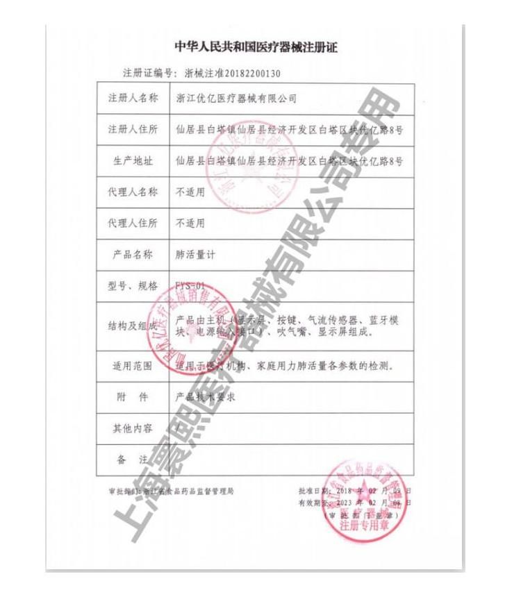 - 道用品你机构、家庭用力肺活量各参数的检测