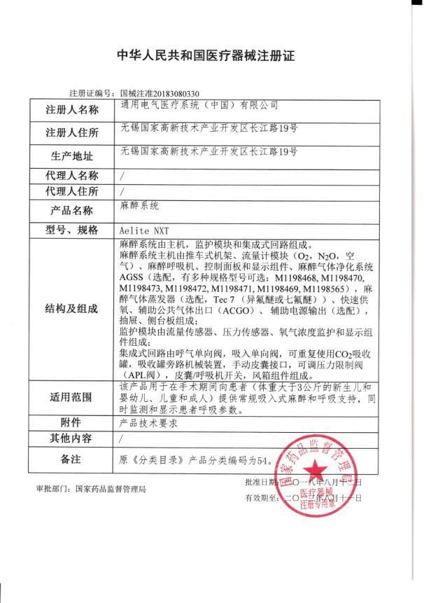 - 国械注准20183080330
