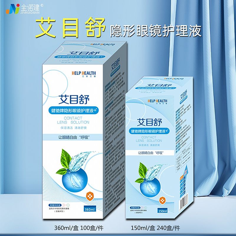 2.艾目舒系列隐形眼镜护理液两种规格360ml、150ml,每盒内赠送隐形眼镜伴侣盒一个。伴侣盒便捷携带,经济实惠。