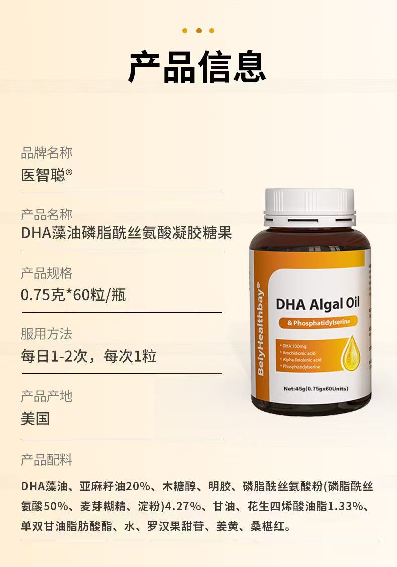 - 医智聪DHA藻油磷脂酰丝氨酸凝胶糖果