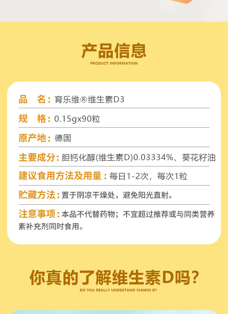 - 育乐维维生素D3(每粒2000IU)