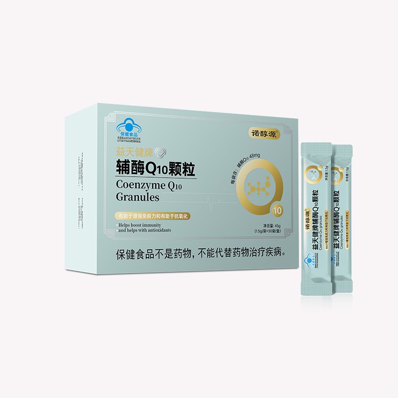 ②采用高纯度辅酶Q10,每袋含48mg,特有水溶性颗粒技术,易吸收