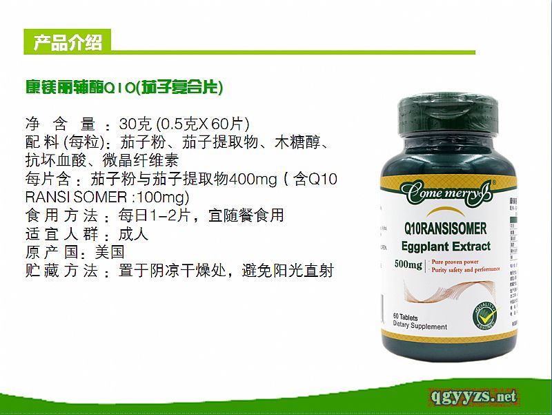 每片含 :茄子粉与茄子提取物400mg(含Q10 RANSI SOMER :100mg)
