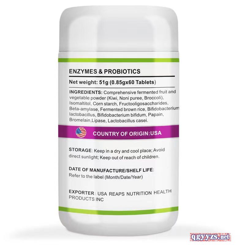 主要成分:综合发酵果蔬粉(奇异果、诺丽果浆、西兰花)、异麦芽酮糖醇、玉米淀粉、发酵糙米、乳双歧杆菌10mg、两歧双歧杆菌10mg、β-淀粉酶、木瓜蛋白酶、菠萝蛋白酶、脂肪酶、干酪乳杆菌10mg、低聚果糖。