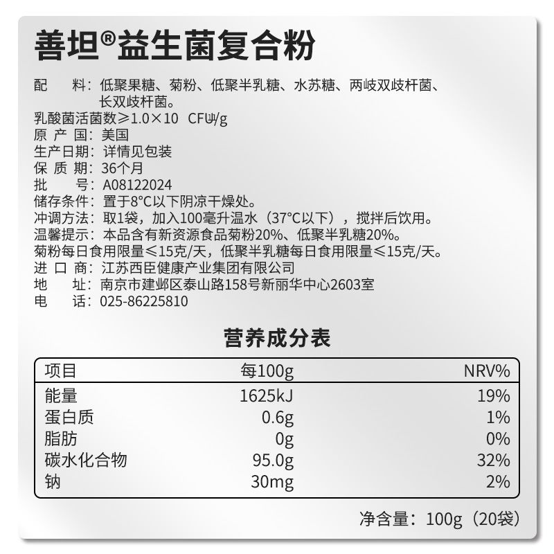 - 成分:低聚果糖、菊粉、低脂半乳糖、水苏糖、两歧双歧杆菌、长双歧杆菌。