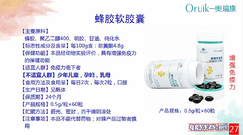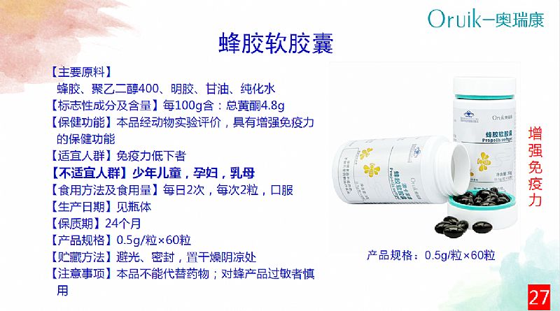 - 奥瑞康蜂胶软胶囊