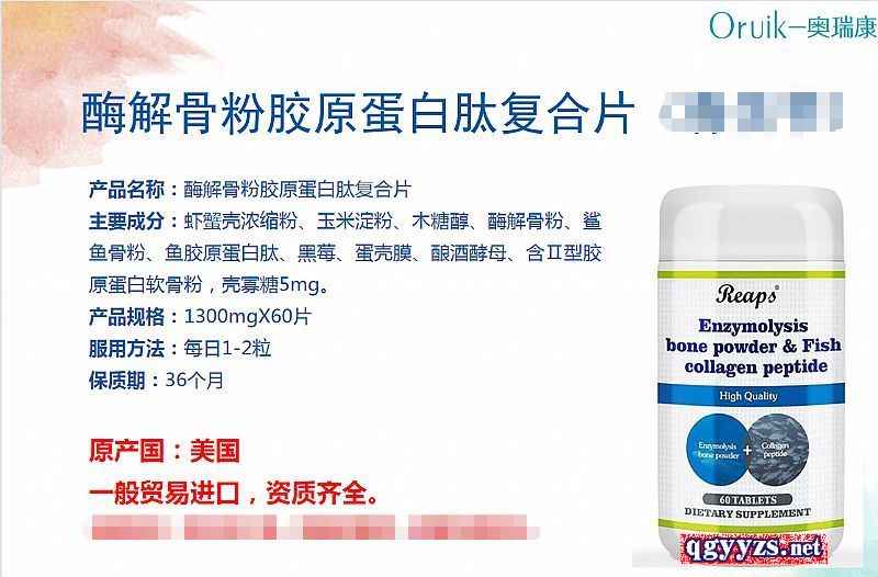 - 产品名称:酶解骨粉胶原蛋白肽复合片