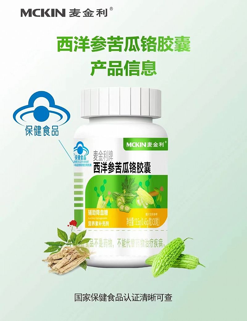 - 原料:苦瓜提取物、桑叶提取物、西洋参提取物、铬酵母辅料:硬脂酸镁