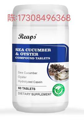 - 山梨糖醇、牡蛎25%、水解酪蛋白、海参6.3%、番茄粉、玛咖粉、黄精、人参(5年生人工种植)、黑芝麻、白果粉、胡萝卜、枸杞子、山药、南瓜籽、桑椹、微晶纤维素,每片含:牡蛎提取物200mg、海参50mg