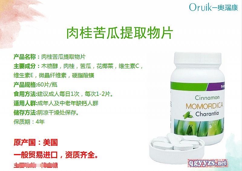 - 产品名称:肉桂苦瓜提取物片