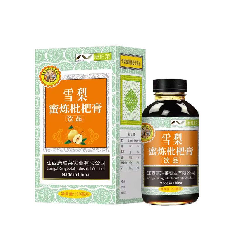 - 本品以蜂蜜、果葡糖浆、麦芽糖、鲜枇杷果、雪梨、金银花等为原料经水提取、浓缩、蜜炼、混合、预热、过滤、调配、灌装等工艺加工制成的植物饮品。
