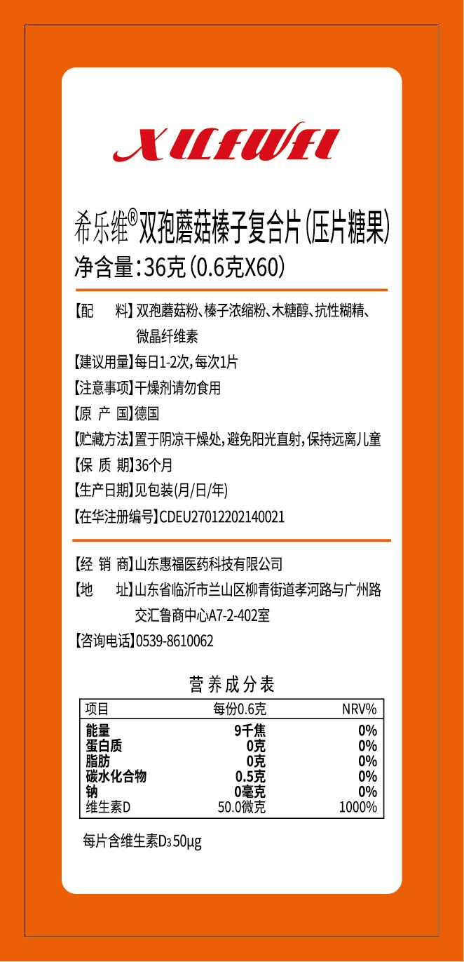 - 希乐维双孢蘑菇榛子复合片压片糖果