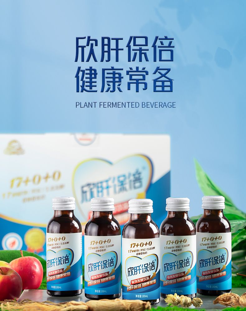 - 欣肝保倍酵素饮品为植物发酵饮品,17种植物(果实)生态发酵,0糖0脂