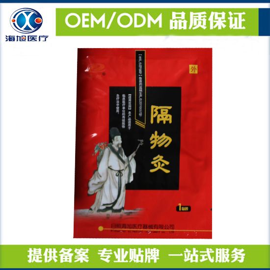 - 打开包装袋,取出隔物灸后撕去两边胶贴保护纸,将隔物灸贴在人体相关穴位上即可。对