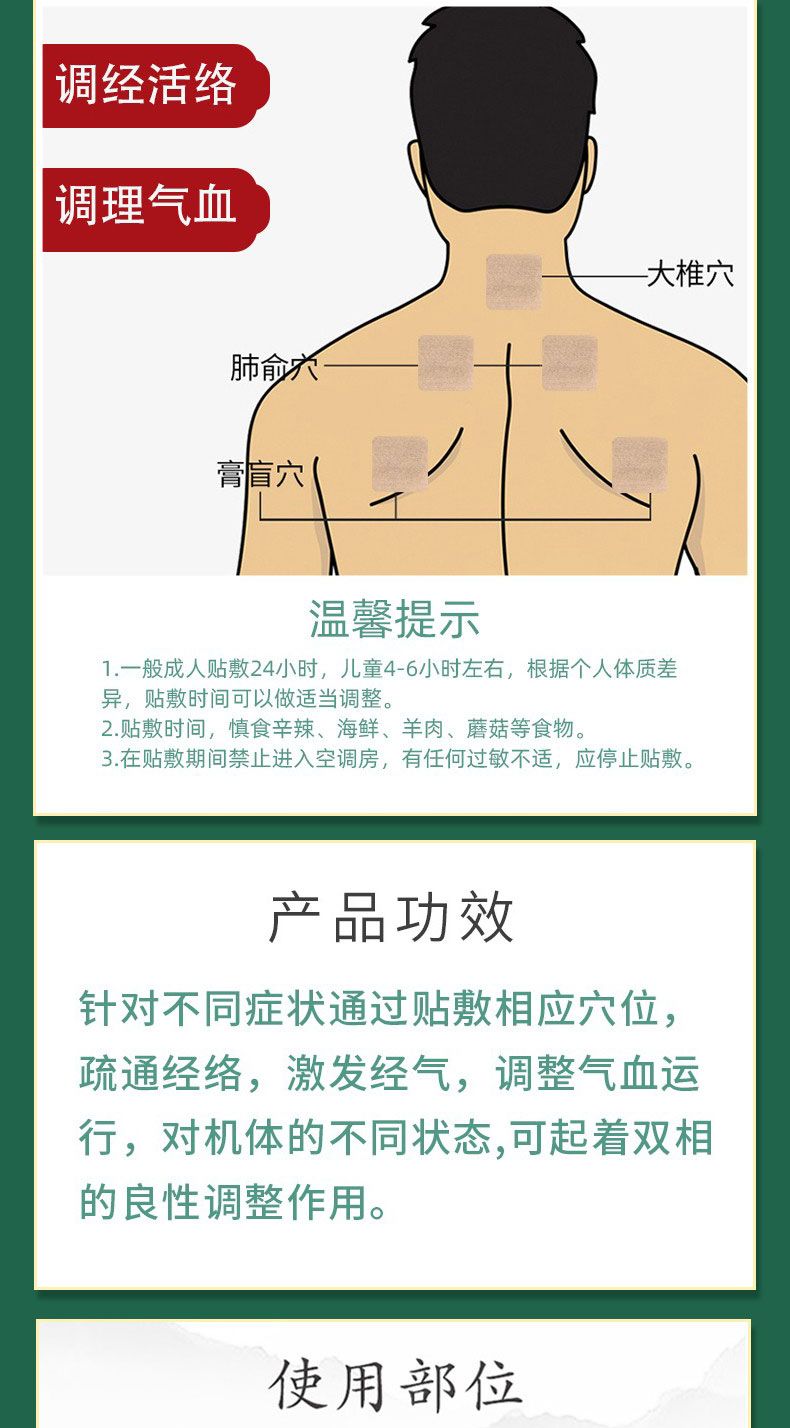 - 本品针对人体特定穴位,对中医穴位起刺激作用