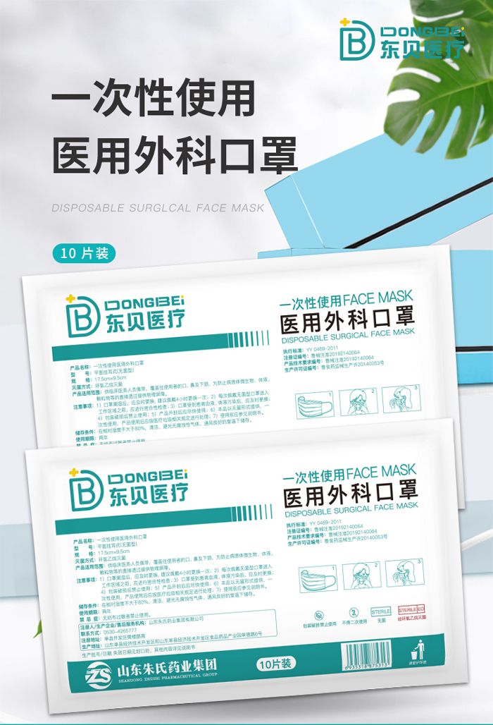 东贝一次性使用医用外科口罩厂家灭菌三层