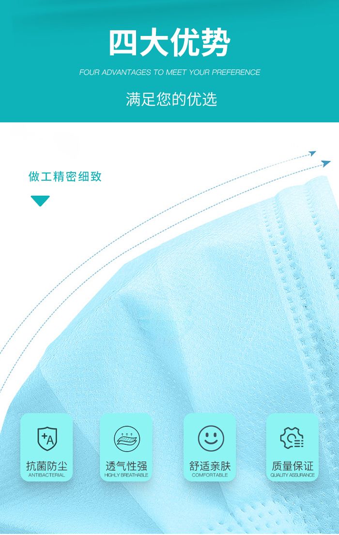 - 供临床医务人员佩带,覆盖住使用者的口、鼻及下颌,为防止病原体微生物、体液、颗粒物等的直接透过提供物理屏障