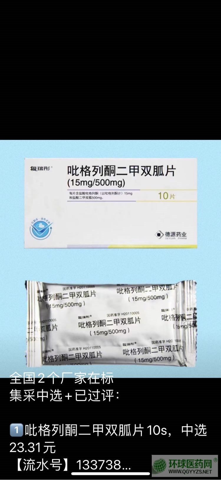 1??吡格列酮二甲双胍片10s,中选23.31元