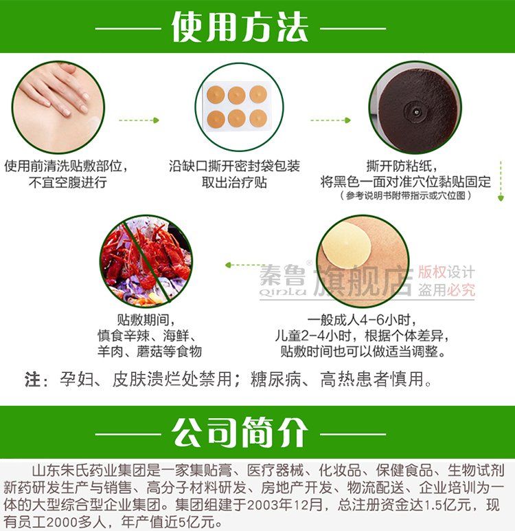 【使用方法】清洁相应穴位,确认包装无破损后,打开包装,取出穴位贴敷治疗贴,将贴剂的隔离膜撕去,以钢珠对准相应穴位敏感点贴压,1片/穴、天。