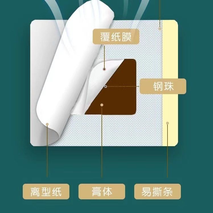- 本品由远红外陶瓷粉、丙烯酸压敏胶、水刺无纺布、不锈钢珠及离型纸制成。
