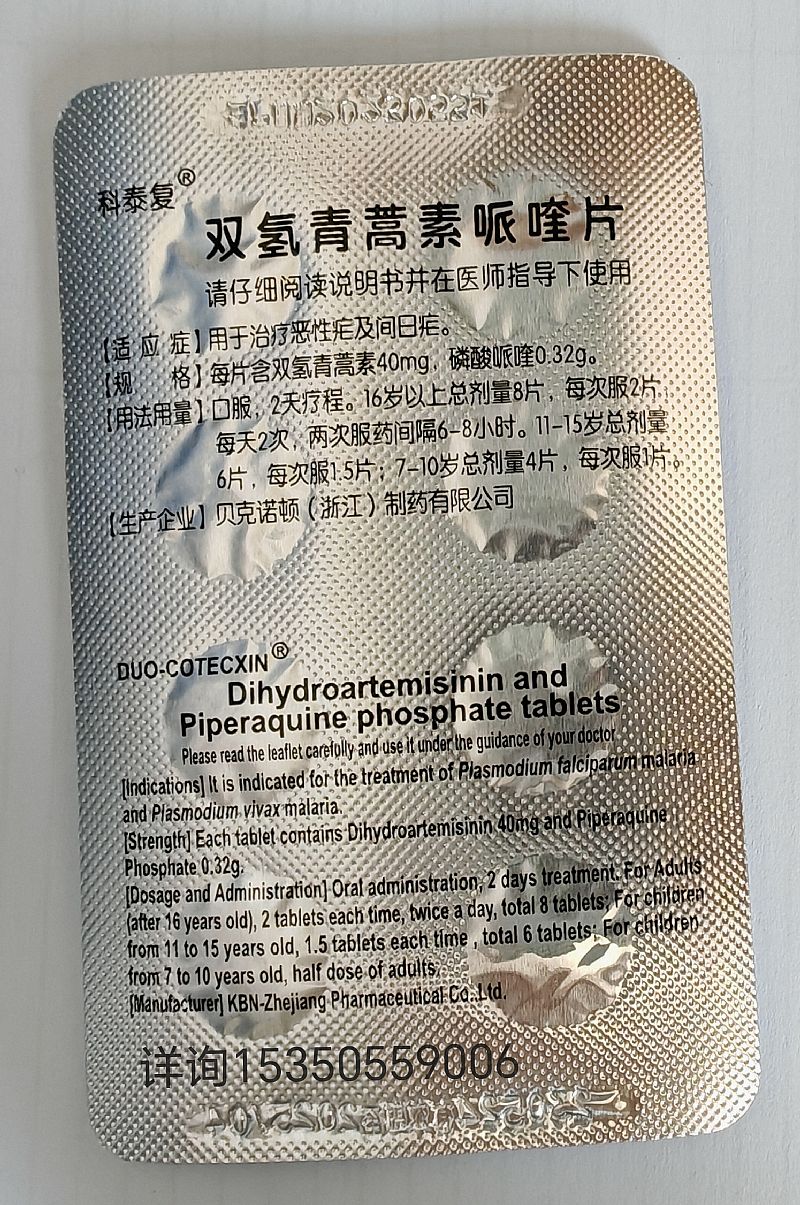 - 双氢青蒿素40mg,磷酸哌喹320mg。