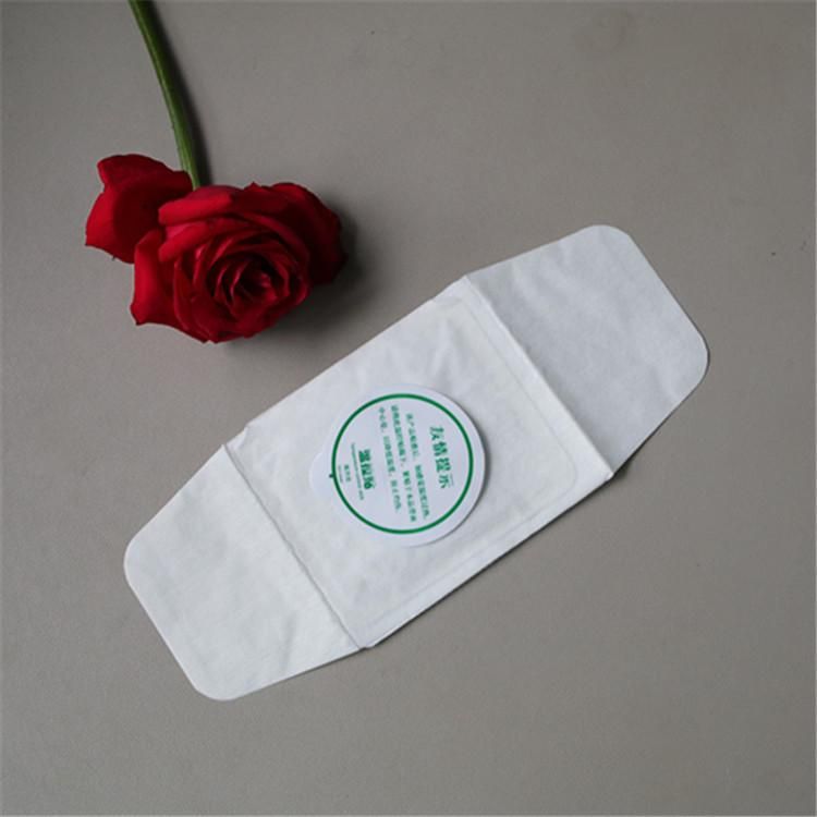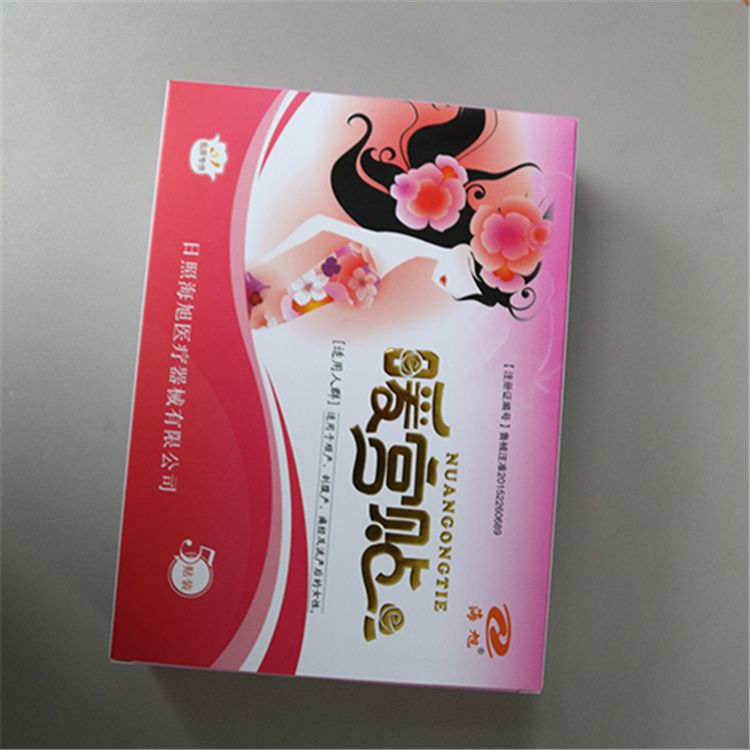 - 确认包装无破损后,打开包装,取出暖宫贴,将贴剂的隔离膜撕去,贴于患者下腹正中脐下三指对应的“气海穴”的内裤外侧,每24小时更换一次,流产连续使用5~10天;顺产连续使用10~15天;剖宫产连续使用15~20天。