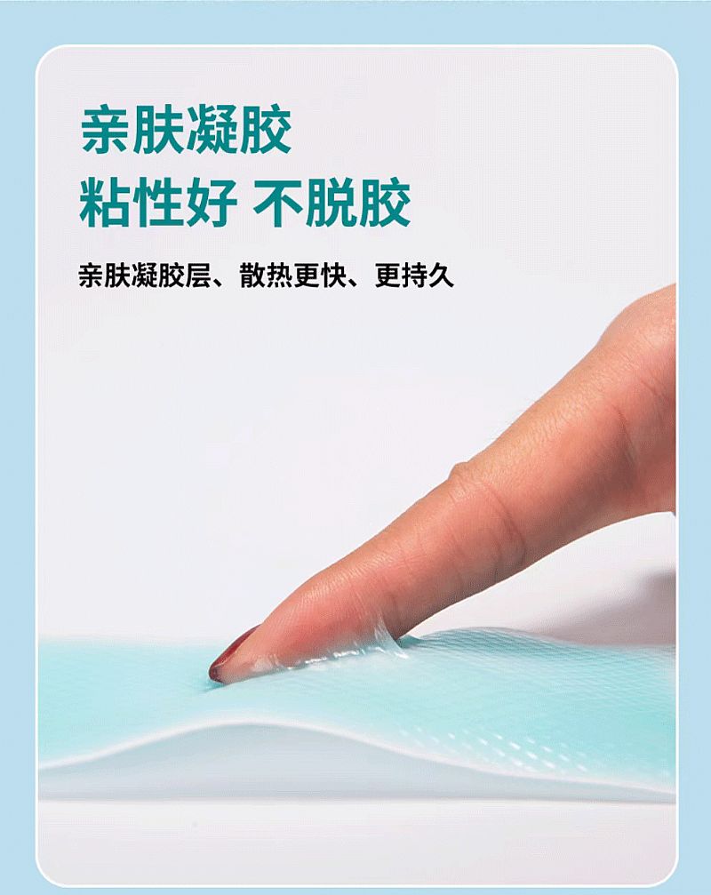 - 本品由无纺布背衬层、凝胶层、聚乙烯薄膜覆盖层组成。凝胶层由聚丙烯酸钠、聚乙烯吡咯烷酮(液体)、甘羟铝、甘油、食品添加着色剂(蓝色)、纯化水组成。降温物质不含有发挥药理学、免疫学或者代谢作用的成分。非无菌产品。