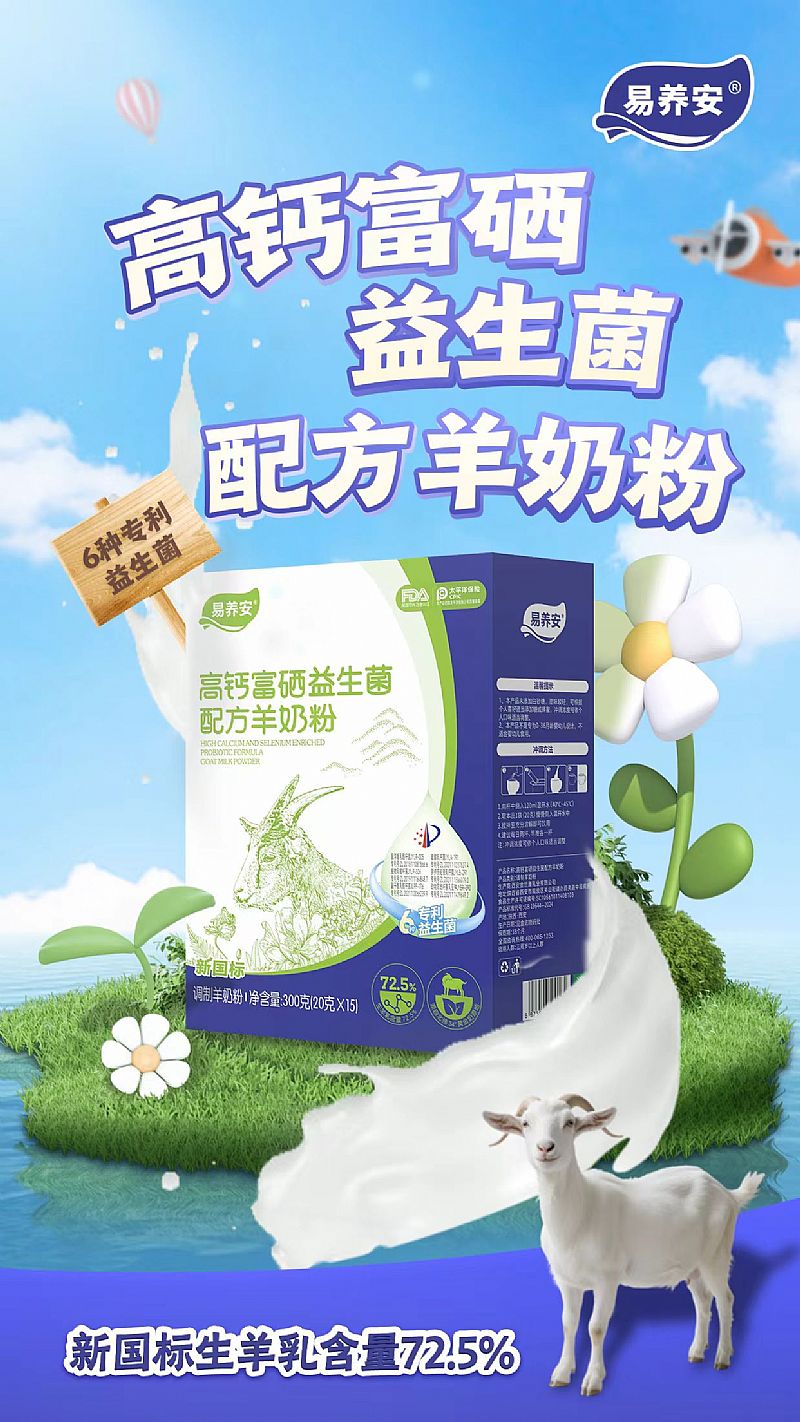 - 易养安高钙富硒益生菌配方羊奶粉卖点: