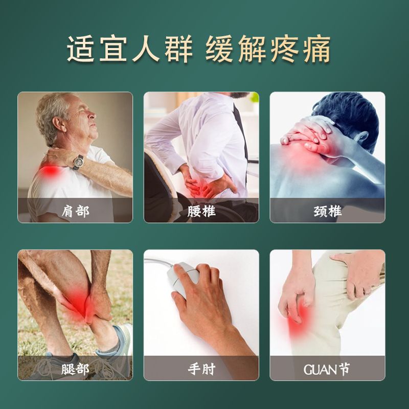 - 适用于因肩周、颈椎、腰椎、关节、腿部疼痛、膝盖不适及跌打损伤、坐骨神经痛、滑膜积液、骨刺等引起的身体不适的亚健康人群及体寒调理人群,通过贴敷不适部位或相应的穴位,具有促进康复和健康的作用。