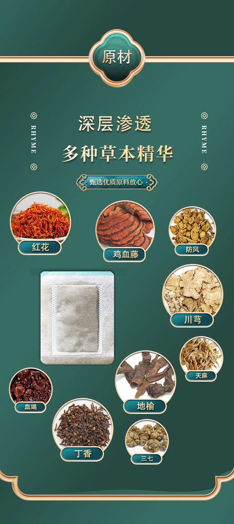- 借助草本成分及热敷效应,缓解疼痛、促进局部循环、抗菌消炎等作用。