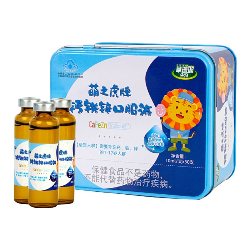 - 本品是以葡萄糖酸钙、乳酸钙、葡萄糖酸亚铁、葡萄糖酸锌、乳酸、白砂糖、纯化水为主要原料制成的保健食品,具有补充钙、铁、锌的保健功能。