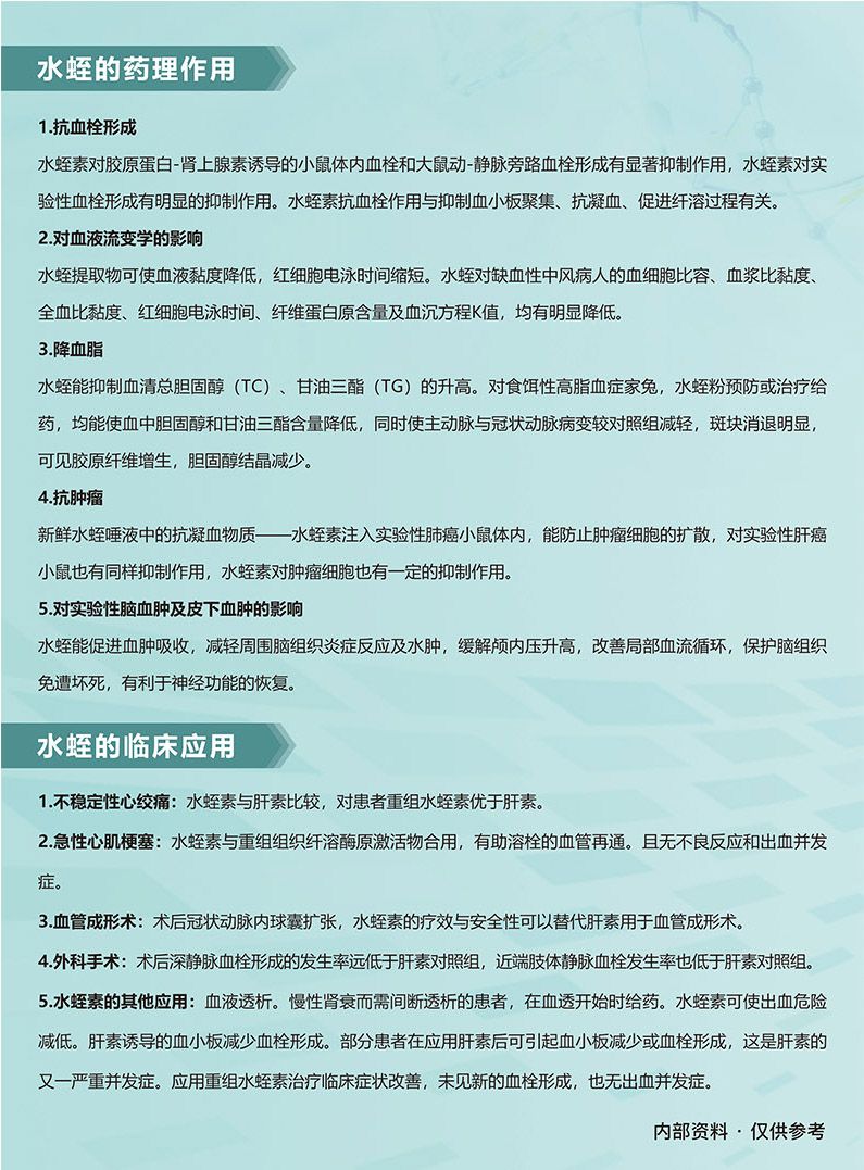 - 水蛭核心活性成分明确,临床功效与成分高度契合: