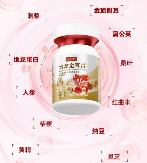 - 地龙蛋白、蒲公英、人参(人工种植<5年)、金顶侧耳、复合益生菌、桑叶灵芝、黄精等